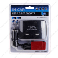 3 SOCKET CIGARETTE LIGHTER SPLITTER (120W) W/2 USB PORT